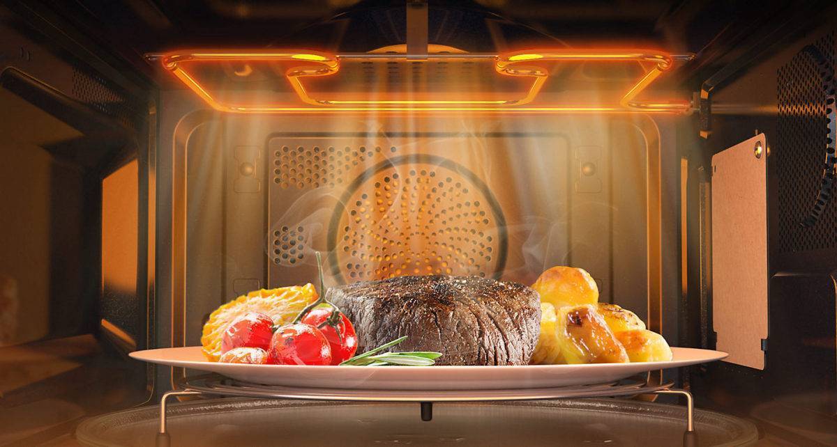 Одна из лучших микроволновок с грилем и конвекцией обладает мощностью 900-1500 Вт. Поддерживает горячий обдув, который ускоряет приготовление пищи. Режимы в кухонном устройстве можно комбинировать между собой. Агрегат позволяет запускать одновременно СВЧ + конвекцию и СВЧ + гриль.