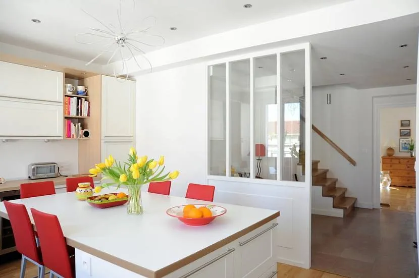 Гипсокартоная перегородка со стеклянными окнами визуально делает комнату больше и светлееИсточник design-homes.ru