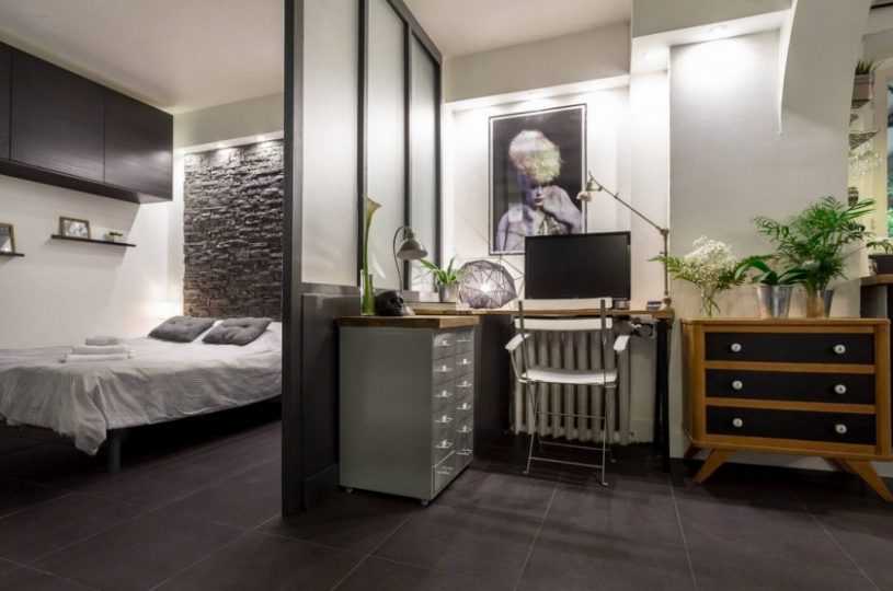 Также фальш-стены делятся на мобильные и фиксированные (стационарные). При планировке интерьера квартиры-студии именно такое разделение на зоны будет более уместным.