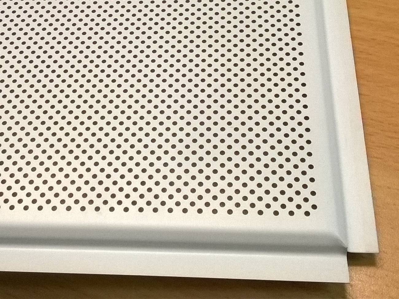 - Размер перфорации: от этого зависит воздухообмен и эстетический вид потолка. Рекомендуется выбирать потолки с мелкой перфорацией, чтобы избежать попадания пыли и насекомых в пространство между потолками.