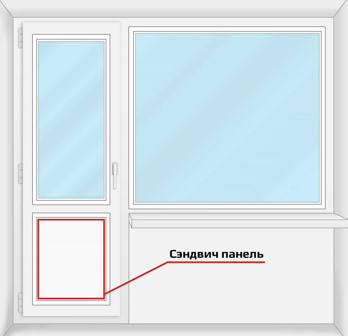 Сэндвич-панель – пластиковая панель балконной двери, обычно расположенная внизу. Она состоит из двух слоев пластика, между которыми находится утеплитель. Сэндвич-панели по конструкции не различаются между собой. На их качество и способность лучше или хуже сохранять тепло и изолировать шум влияет сам материал – пластик. Толщина пластика для «сэндвича» может быть от 8 до 32 мм: панель до 24 мм используется в дверях эконом-класса, 28-32 мм – в среднем и премиум сегменте.