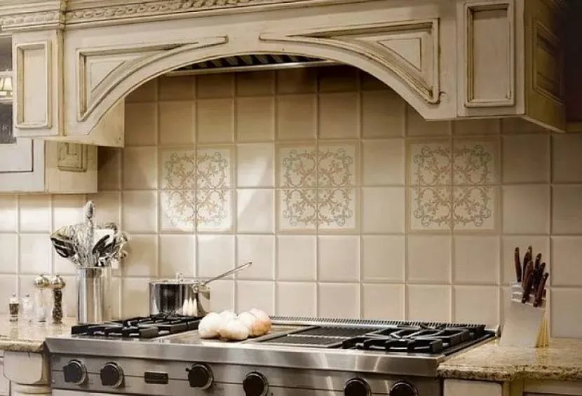 Бежевая прессованная плитка на кухне в стиле классикИсточник expertvybor.ru