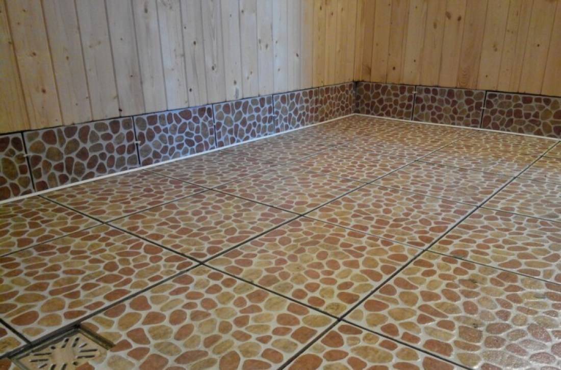 При обустройстве бани большое значение имеет правильный пол. Керамическая плитка обладает повышенной теплоотдачей, быстро нагревается, к тому же ее легко монтировать на теплый пол любой конструкции, он незаменим в зоне отдыха, помывочной и парной.