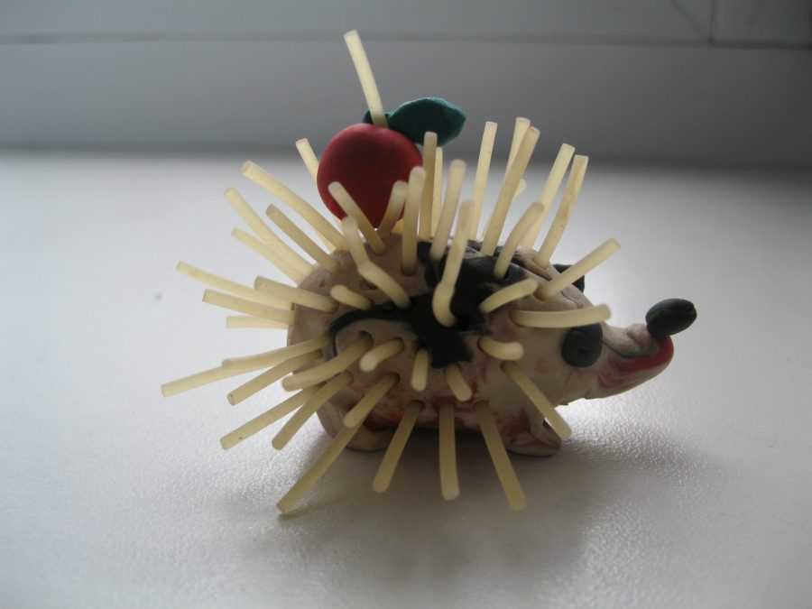 Он уже был в примерах поделок из макарон выше. Такого ёжика смогут сделать дети от 3 лет. Но помощь родителей всё же будет необходима. Поэтому нужно садиться всей семьёй и делать такого замечательного ёжика.