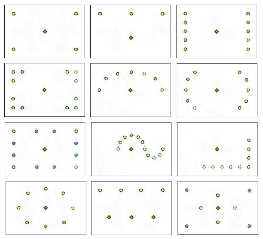 Чтобы получить хорошее освещение, нужно учесть расстояние между приборами. Дизайнеры применяют несколько стандартных способов, монтаж которых осуществляется с использованием различных схем размещения спотов.