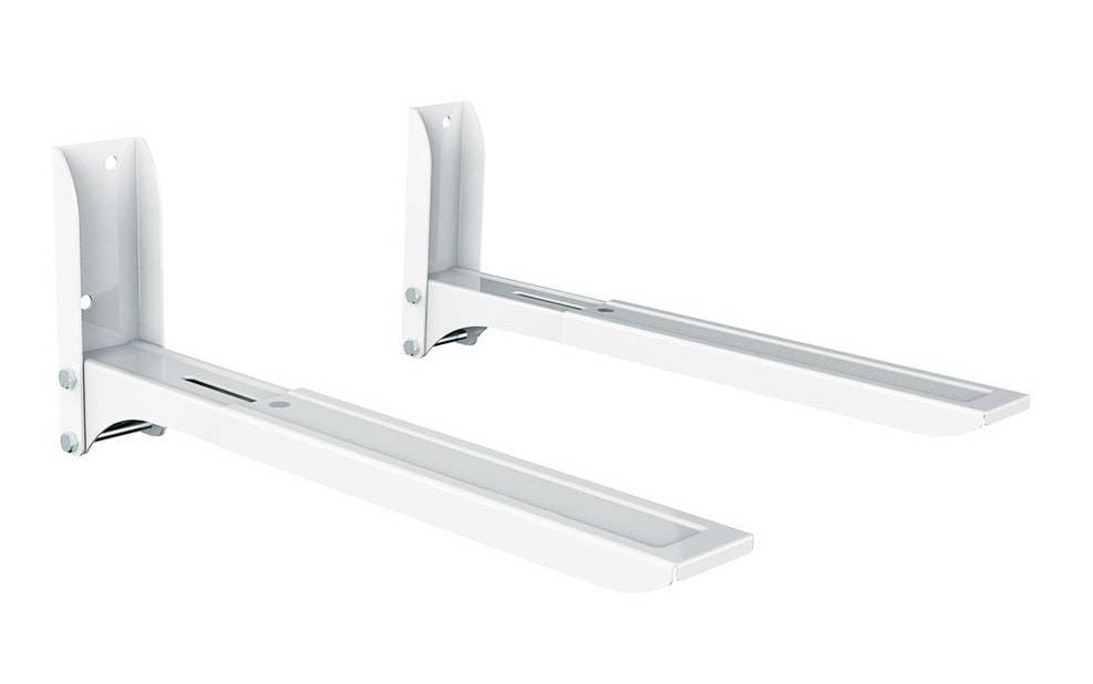 Кронштейн для микроволновки — конструкция, состоящая из поперечины и прикрепленных к ней перпендикулярно Г-образных держателей. Выбирать подставку для этого прибора нужно только среди тех моделей, которые созданы специально для микроволновых печей.