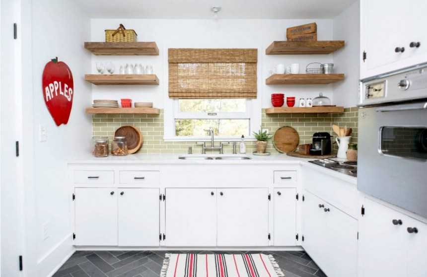 Варианты расположения полки в интерьере кухни