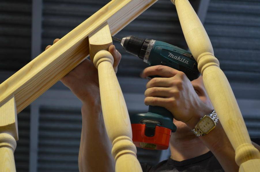 Если есть опыт работы на токарном станке, то можно выточить красивые балясины круглой формы. Если токарного станка в наличии нет, то есть вариант – заказать отдельные элементы у столяра, а затем собрать в единую конструкцию.