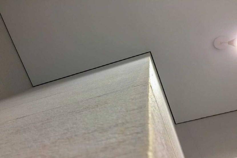 Закрыть место стыка натяжного потолка с коробом или стеновой плоскостью.