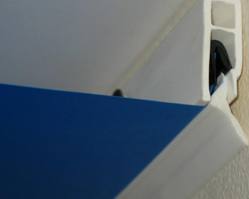 - В области между полотном потолка и бордюром стоит применять подкладку, в качестве нее подойдет пищевая пленка;