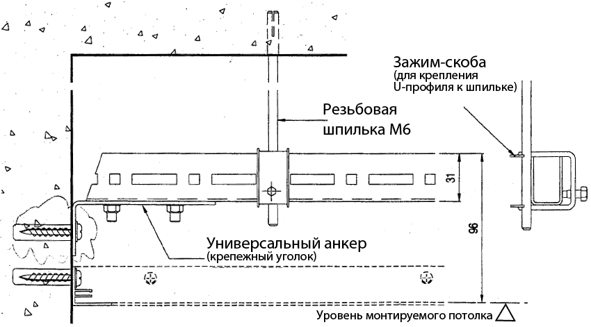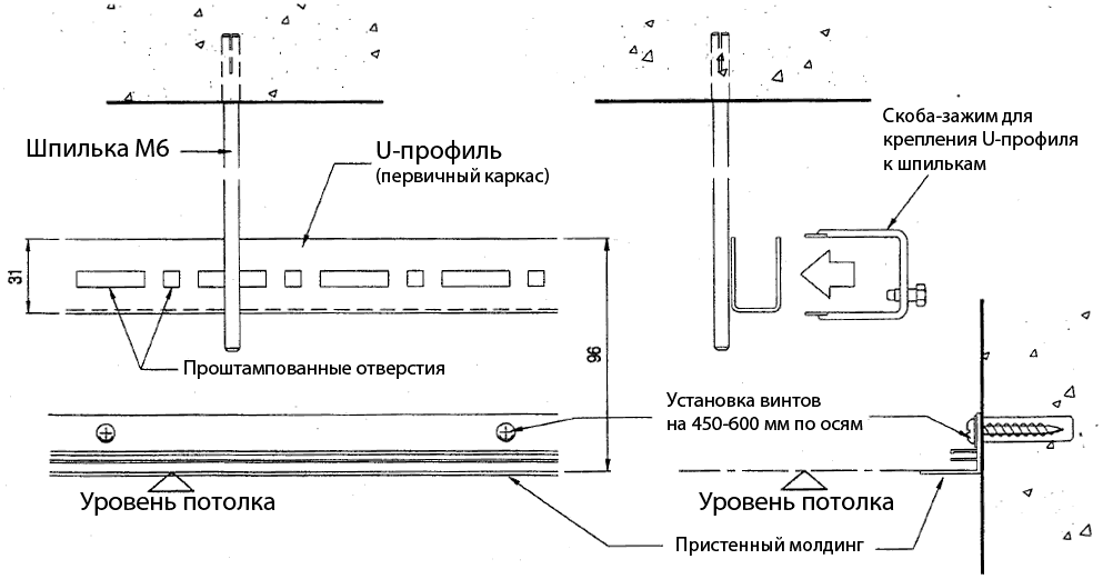 Примечание: тяжелые светильники и кондиционеры должны крепиться на собственных подвесных элементах.