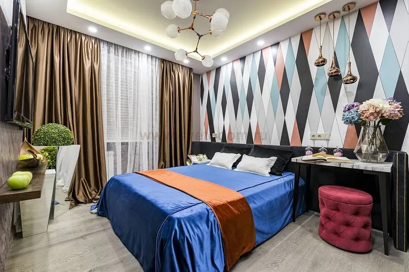 Эклектика – это стиль, который объединяет различные элементы из разных стилей. В такой спальне можно использовать потолки с необычными формами и цветами, которые будут создавать атмосферу оригинальности и индивидуальности.