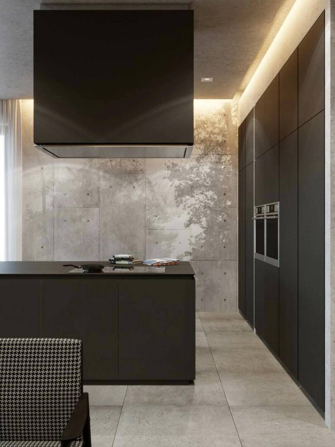 Дымоход сделан из необработанной бетонной плиты. Проект пентхауса в Нью-Йорке, дизайнер Павел Алексеев