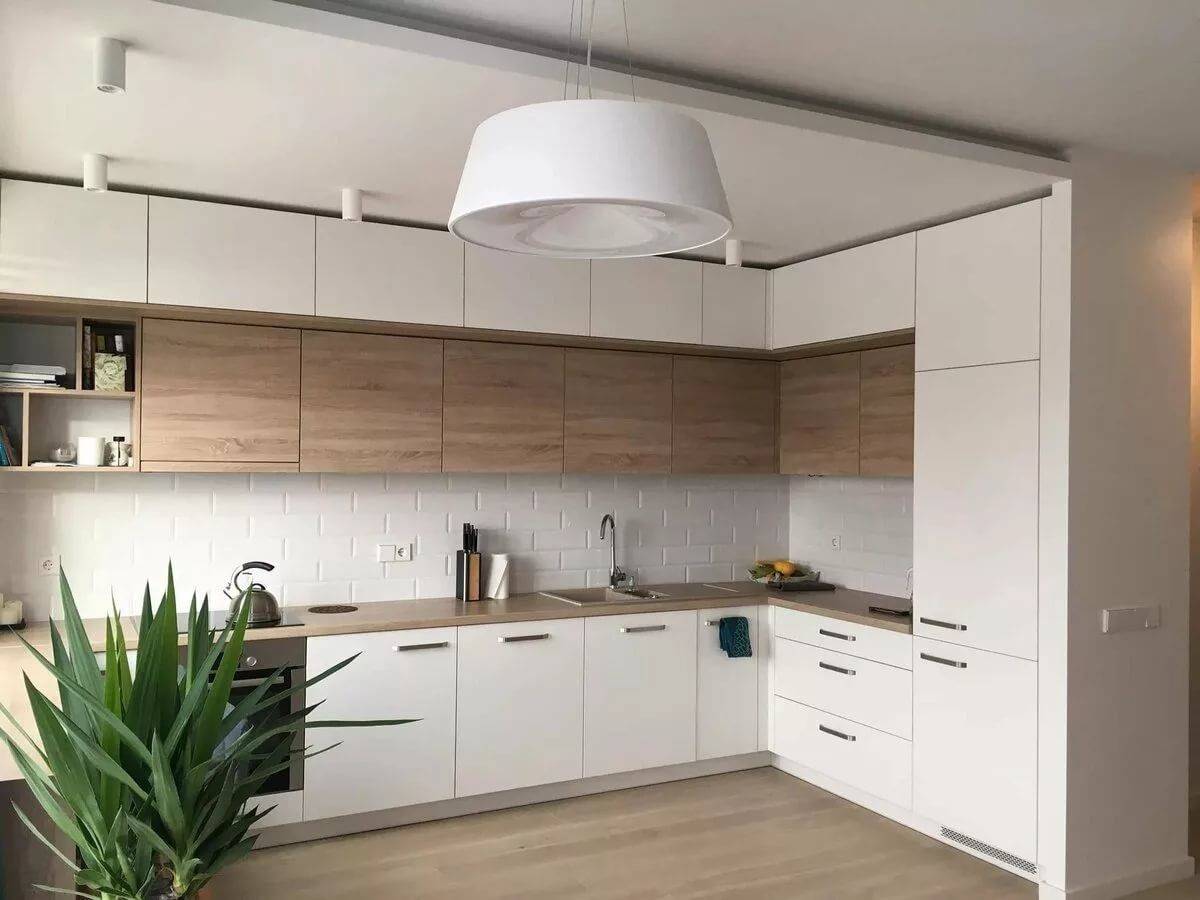 Тут с большего вкусовщина, но есть один универсальный вариант — белая кухня с деревянной столешницей. Это идеальный вариант по комбинации внешнего вида, цены и практичности. А ещё их практически нереально испортить. Серьёзно, многие пытались и делали всё остальное просто ужасно, но получалось всё равно как минимум неплохо.