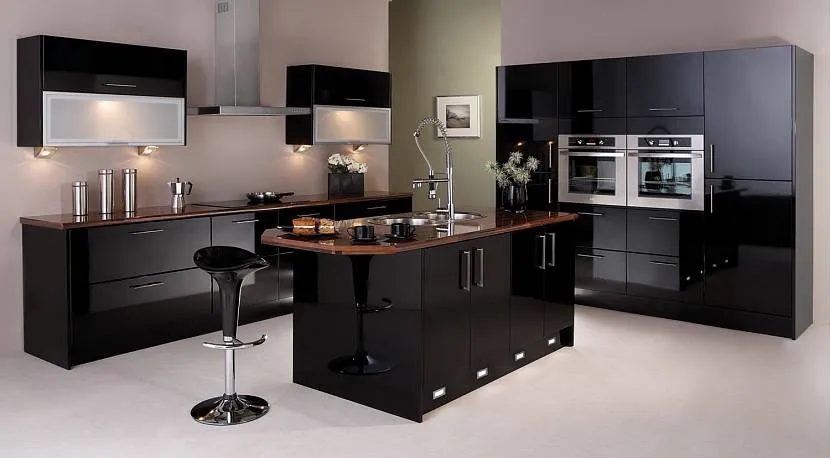 Современные стили в интерьерах отличаются большей сдержанностью в сравнении с классикой; по этой причине для их разнообразия используется сочетание разнофактурных материалов и бытовая техника встроенного типа. Допускаются комбинированные варианты с использованием пластика, древесины и металла. Секции для хранения кухонной утвари и рабочие поверхности можно украсить стеклом – прозрачным, матовым, витражным, с пескоструйной обработкой (орнаментами).