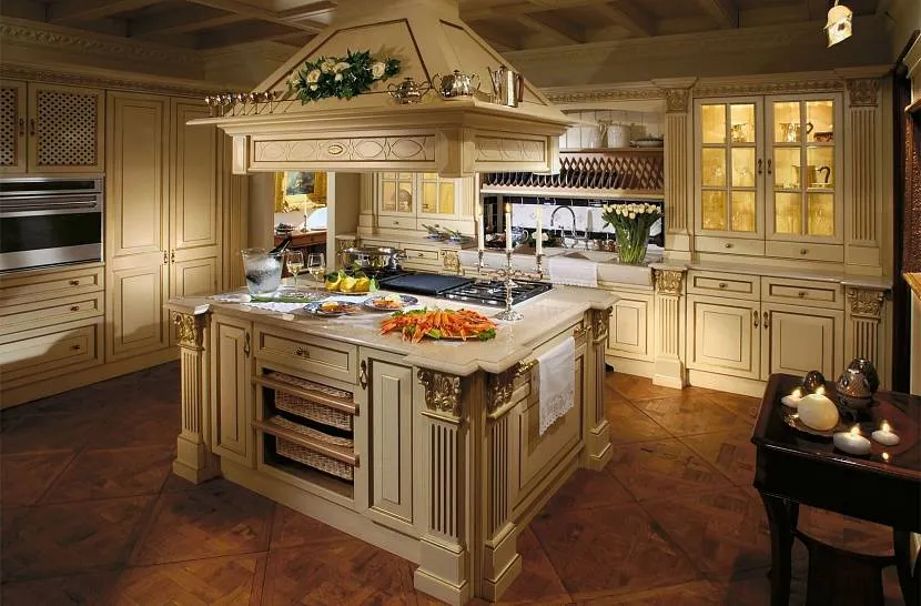 Сделать выразительнее дизайн мебели в классической кухне поможет и изящная фурнитура под старину.