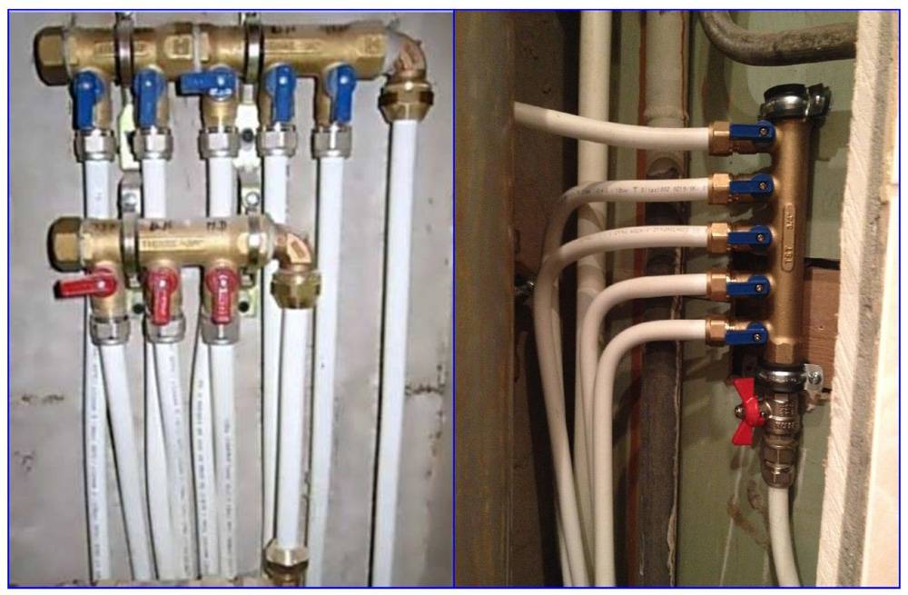 В системах теплых полов трубы подсоединяют к гребенкам коллекторов, имеющих внешний вид патрубков с наружной резьбой и внутренним штуцером. То есть штуцер и резьбовой отвод заменяют часть компрессионного фитинга, и на него достаточно накрутить только гайку с уплотнительной прокладкой (цангу), которая зажмет кольцо с прорезью на трубной оболочке.