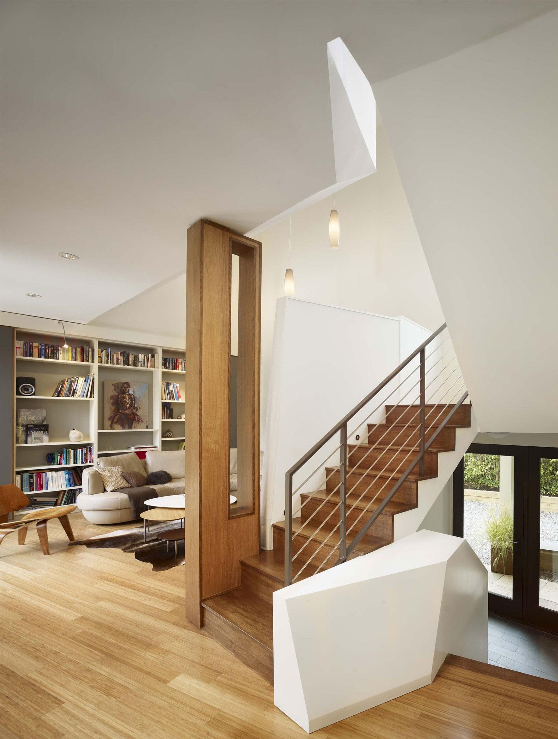 Лестница на второй этаж в современном стиле должна соответствовать основным постулатам данного течения в дизайне. Четкие и строгие формы, базовые цветовые решения, отсутствие лишних деталей, современные материалы – если все это можно сказать о постройке, то она определенно впишется в данный контекст.