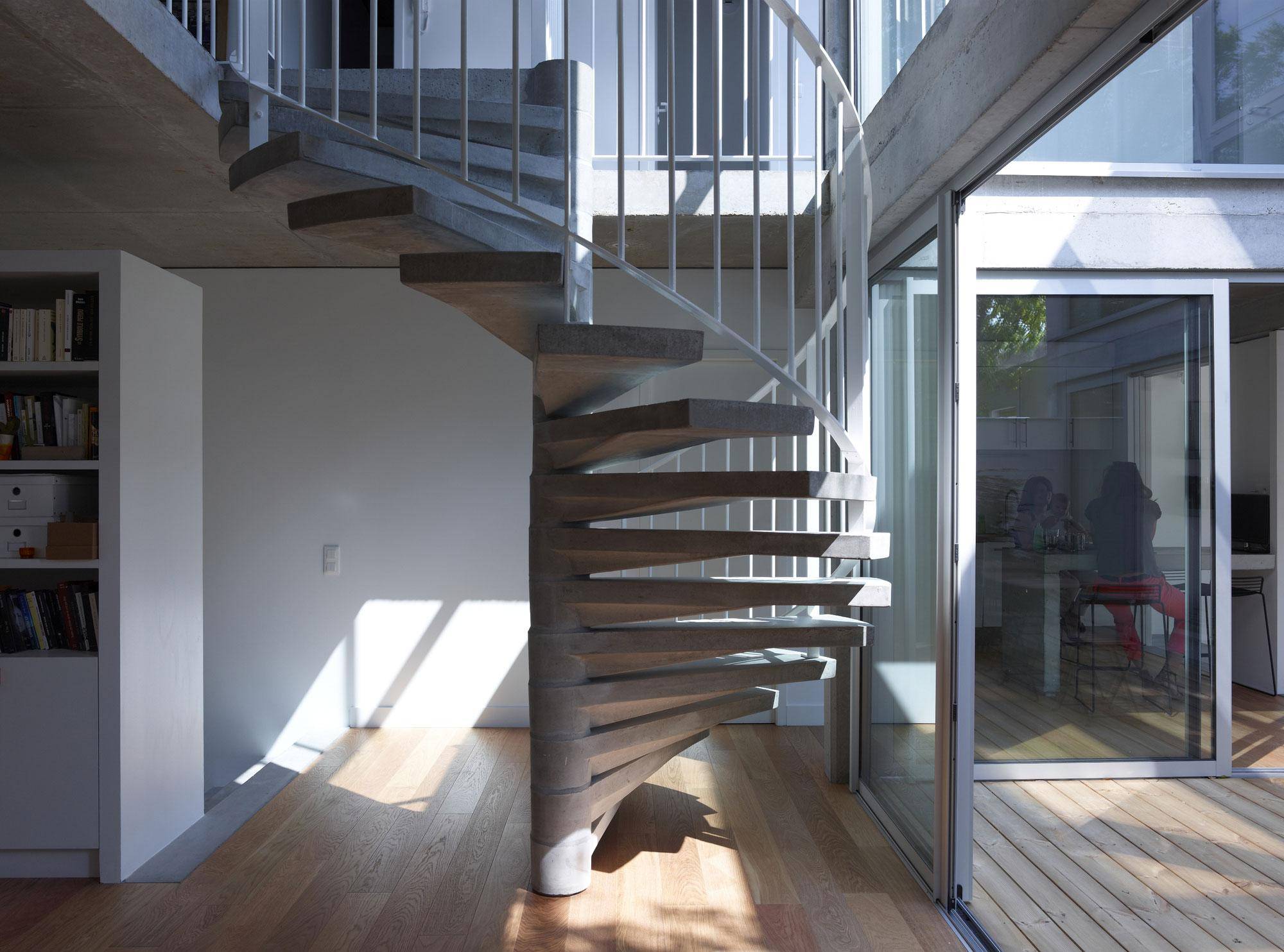 В загородном домике отдай предпочтение обычной маршевой лестнице на косоурах, выполненной в светлых тонах. А вот для современной двухэтажной квартиры и частного дома подойдет легкая конструкция на больцах из светлой древесины.