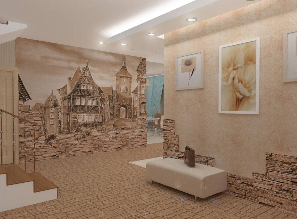 Всё чаще в последнее время прибегают к использованию разнообразных материалов при отделке стен прихожей. Например, чрезвычайно популярны фотообои.