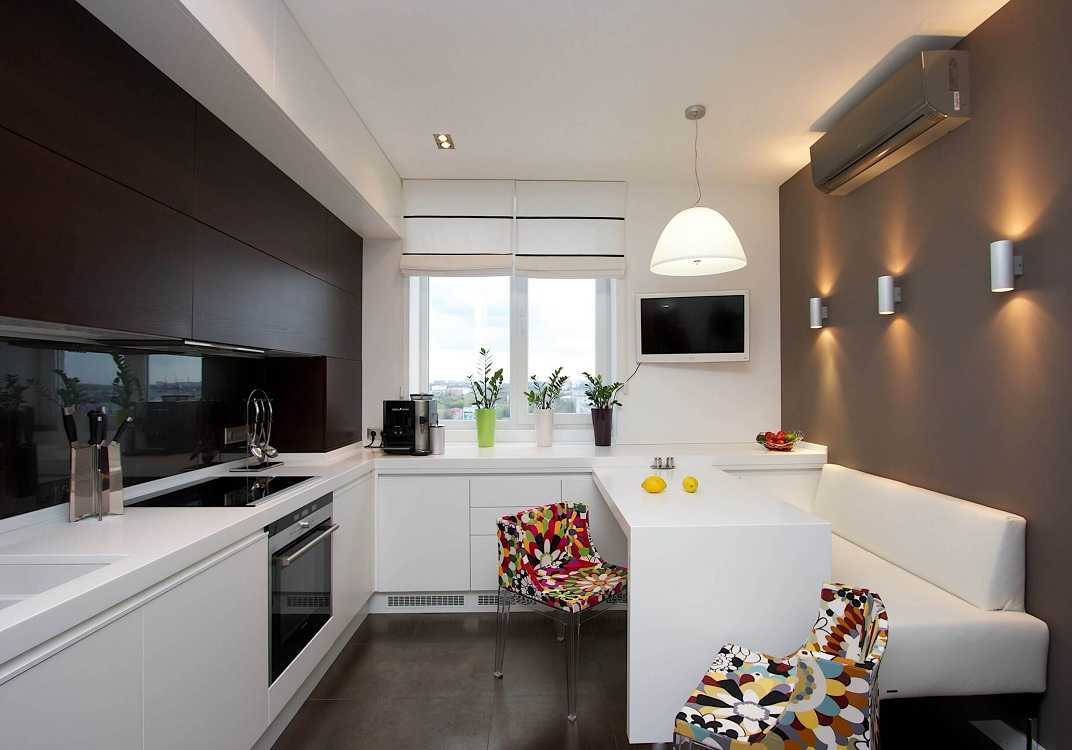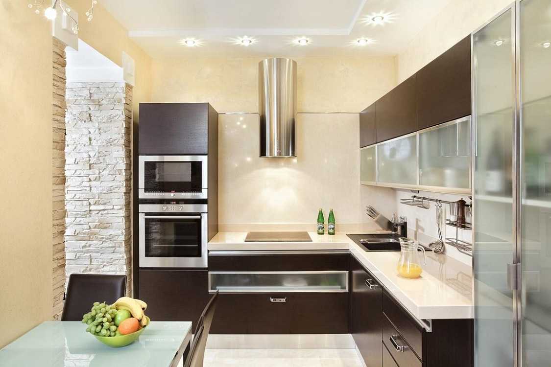 Сделать стильный дизайн кухни 7 кв. м. с холодильником, плитой, посудомоечной машиной и другими нужными предметами сложно, но можно.