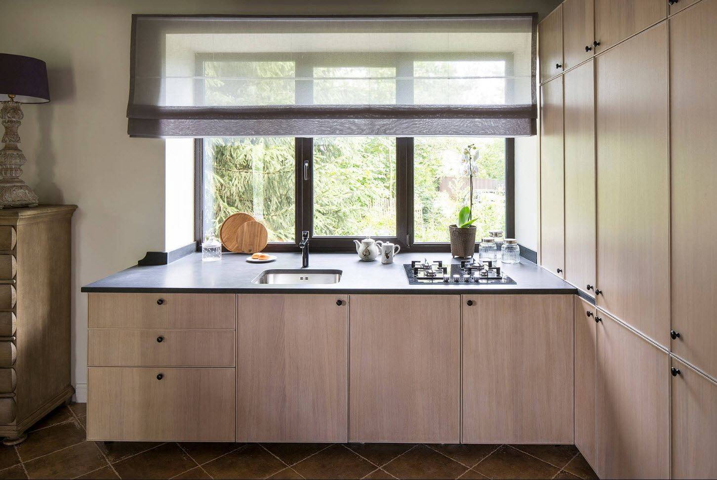 Избегайте массивных штор и карнизов, «утяжеляющих» кухню 8 кв. м, дизайн которой лучше дополнить компактными светлыми роллетами.