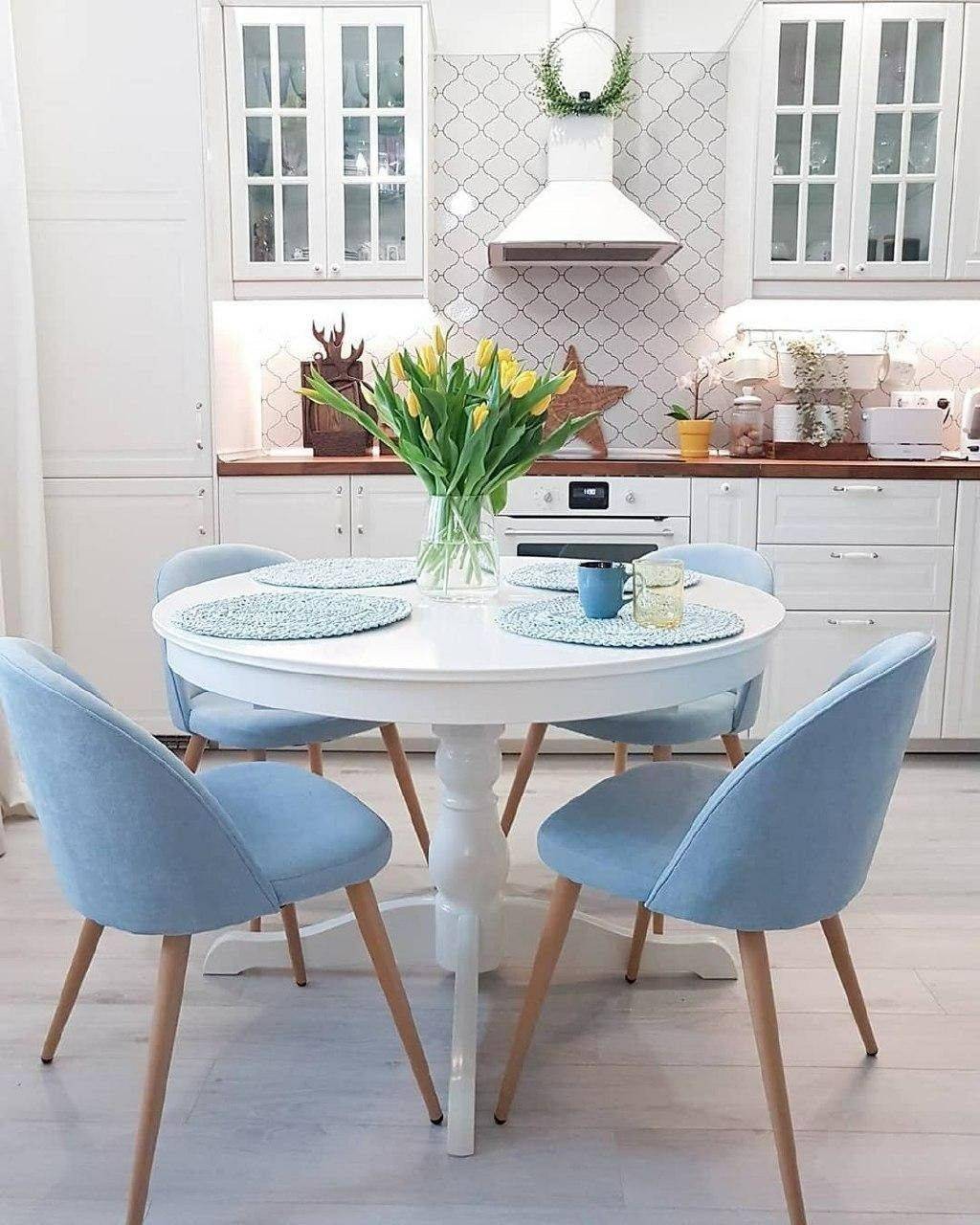 Неплохим вариантом для кухонь размером 2×4 м считается установка стола с удобными легкими стульями, при желании можно выбирать и складные варианты. Это сэкономит площадь помещения, а с приходом гостей появится возможность увеличить число посадочных мест.