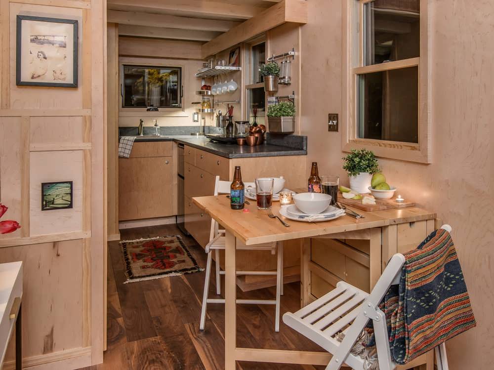 На маленькой площади редко найдётся свободное место для стола. Здесь подойдёт вариант с раздвижным столом или откидной столешницей.