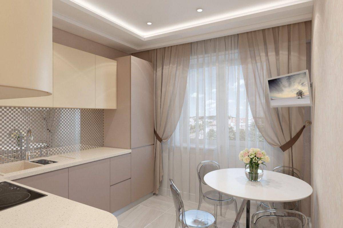 В кухонном дизайне в малогабаритных квартирах лучше придерживаться приглушенных и мягких красок. Наиболее популярным фоном для стен является бело-бежевый цвет.