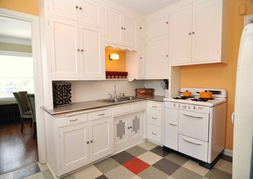 Следует тщательно спланировать размещение кухонного гарнитура и отдать предпочтение встраиваемой мебели. Вместо плиты, можно использовать варочную панель, а духовой шкаф поставить отдельно.