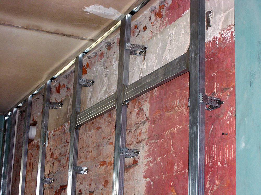 Фасадная обрешетка под гипсокартон устанавливается с наружной стороны