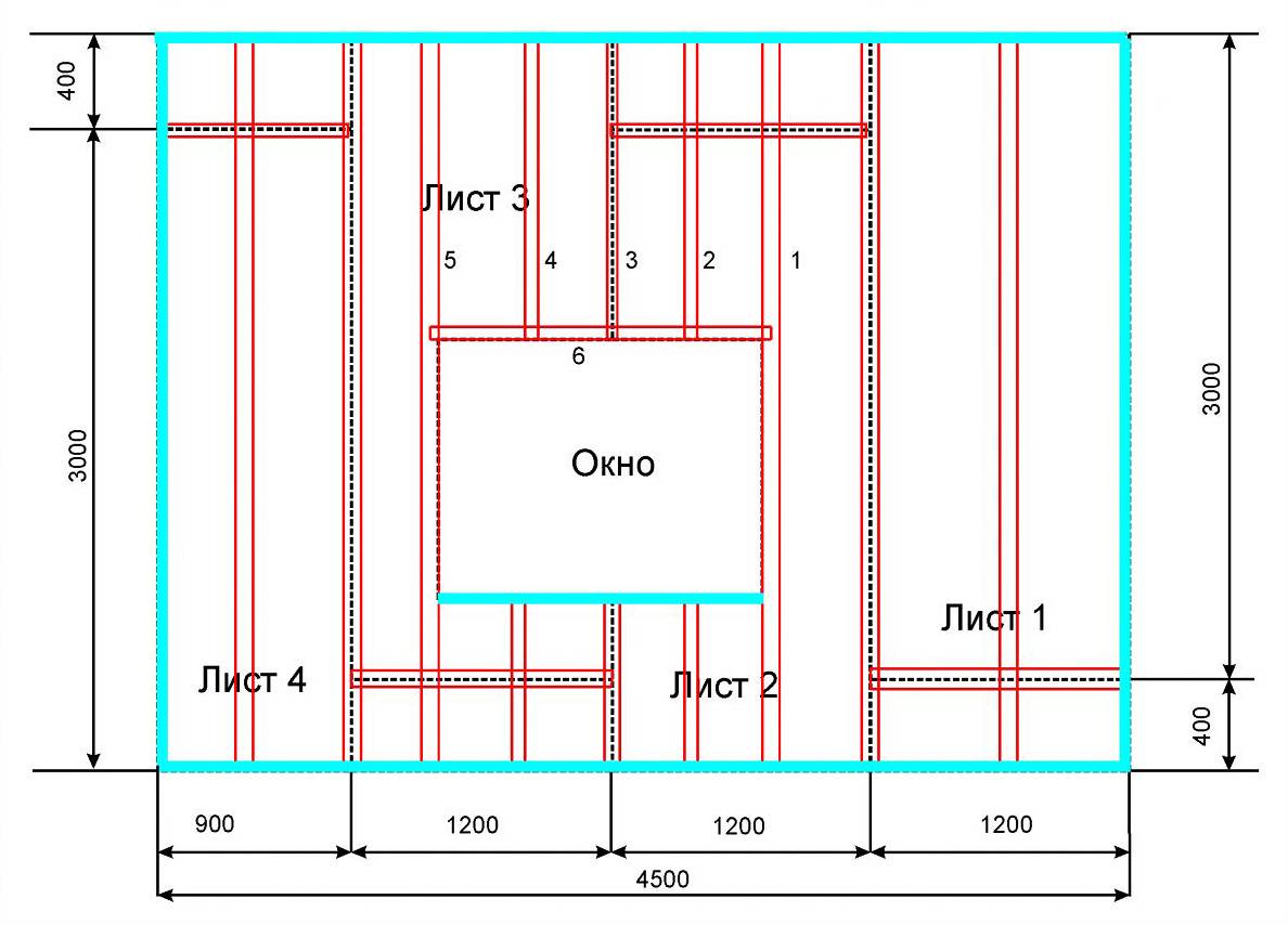 Итак, ваша конструкция должна состоять из равных ячеек, в которых и будут размещаться листы гипсокартона.