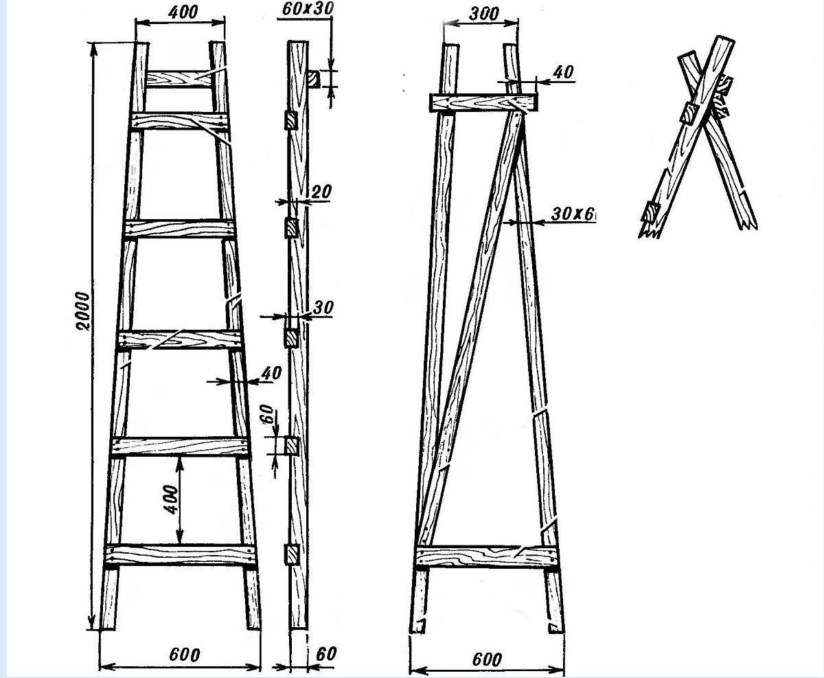 Расчеты и размеры, необходимые для изготовления приставной лестницы своими руками: