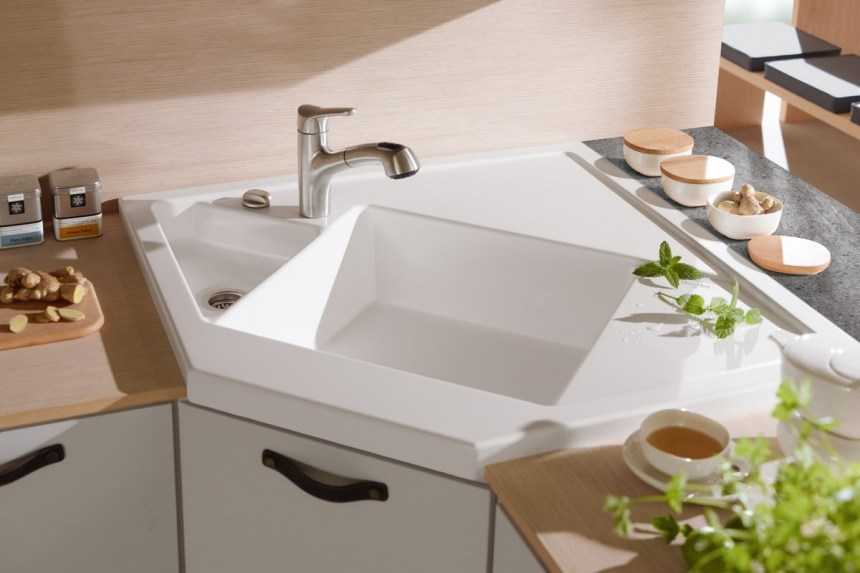 Тщательно продуманная форма угловой мойки позволяет эффективно использовать окружающее пространство