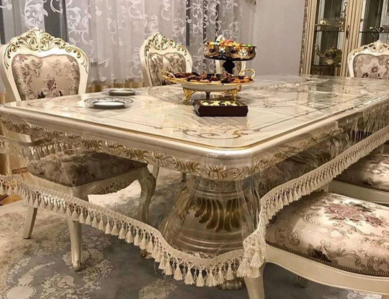 Силиконовая скатерть прозрачная с бахромой может послужить прекрасной защитой столешниц, изготовленных из древесины, стекла, пластика. Ее можно приобрести в специальных магазинах.