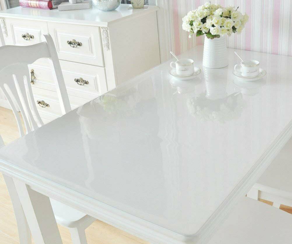 Защитная плёнка подходит для всех типов столов, но особенно актуальна на стеклянных и лакированных. Скатерть защищает кухонный стол от порезов, письменный — от затирания, обеденный — от случайных пятен.