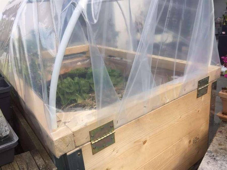 Эту уличную теплицу с откидывающейся крышей вы можете сделать своими руками так же, например, под рассаду капусты.