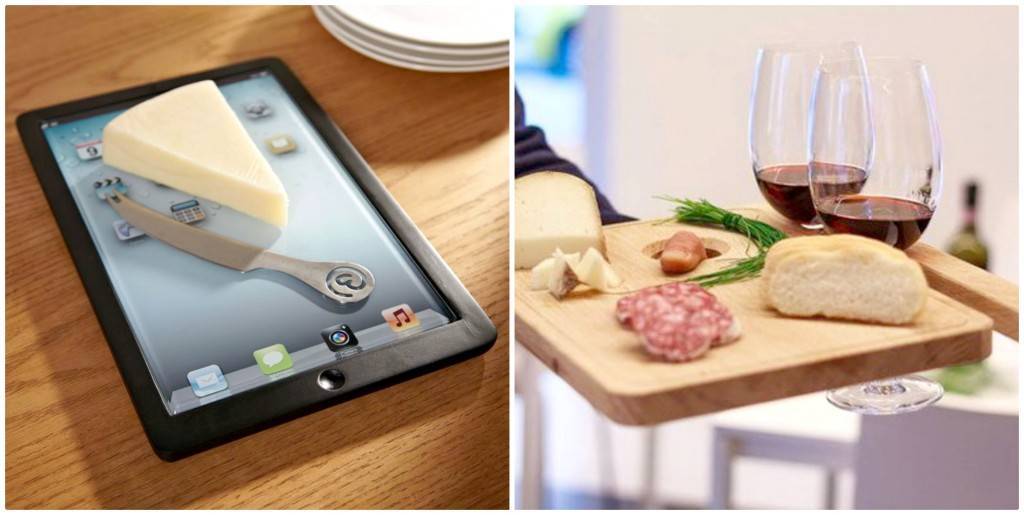 А как вам разделочная доска для нарезки в виде iPhone? Нарезая сыр в присутствии гостей на «новеньком гаджете», можно сделать сразу несколько дел: собственно нарезать сыр, поднять себе настроение и подшутить над гостями. А усиливает сходство с реальным гаджетом встроенная в разделочную доску светодиодная подсветка. Вряд ли данное изобретение приживётся на рынке бытовых товаров, однако его наверняка оценят любители необычных вещей и розыгрышей.
