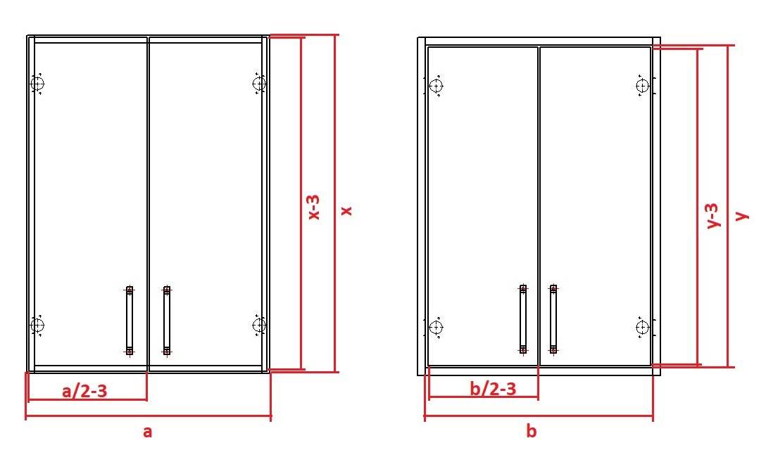 В этом случае будет немного сложнее. Как правило, оба фасада имеют одинаковую форму и размеры, а значит рассчитывать все придется ровно по тому же принципу. Просто между дверцами тоже учтите небольшое расстояние, чтобы они хорошо открывались. Одного — двух миллиметров будет вполне достаточно.