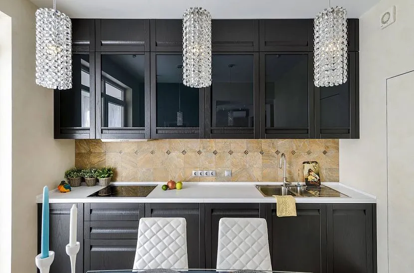 Но не стоит злоупотреблять. Если верхний шкаф намного длиннее нижнего, то при таком нарушении пропорций нарушается гармония всего интерьера.