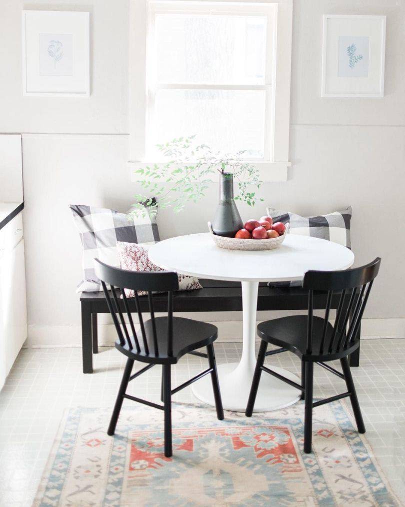 Полезный совет: для того, чтобы визуализировать, как ваш кухонный стол впишется в помещение, можно взять простыню или скатерть, которая соответствует размерам стола и разместить в той позиции, где вы планируете поставить стол.