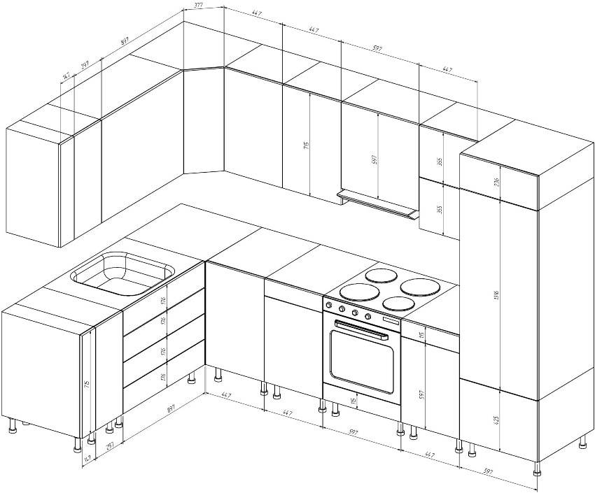 Размеры кухонных шкафов: особенности составления эскиза и чертежа