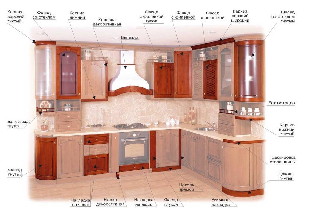 Деталировка основных кухонных шкафов: чертежи и размеры