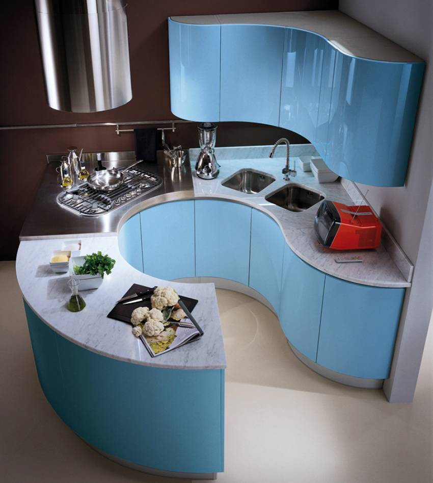 Качественная кухня с гнутыми фронтами характеризуется более длительным сроком службы по сравнению с традиционными аналогами. К тому же острые углы нередко приводят к получению травм.