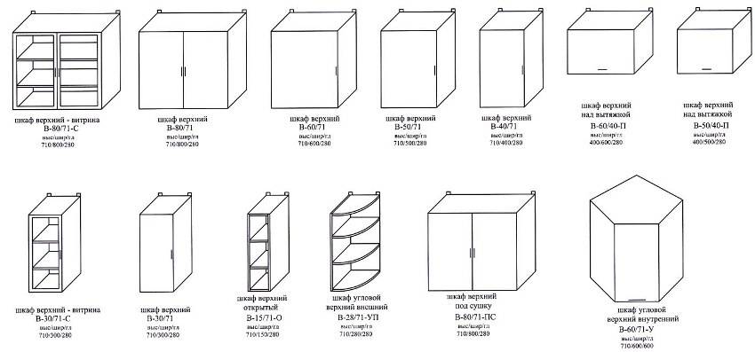 Стандартные размеры навесных кухонных шкафов