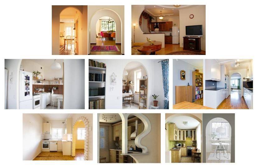 Демонтаж входной двери. Вместо нее оставляют пустой проем, объединяют небольшую кухню с прихожей, делают арку. Отсутствие двери допустимо для помещений, где варочная панель работает от электричества.