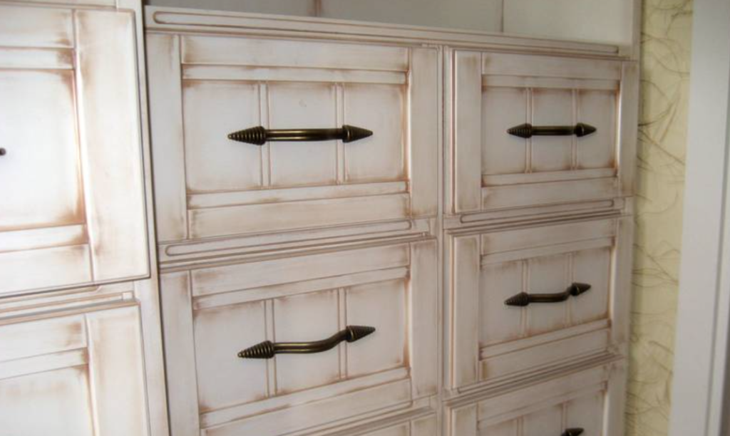 Для возобновления функциональности мебели изначально следует уделить внимание петлям, ручкам, направляющим. Фурнитура может работать исправно, но места ее монтажа часто расшатываются, материал корпуса и передних панелей крошится, крепление теряет надежность. Такая ситуация требует переноса дверных навесов или ручек