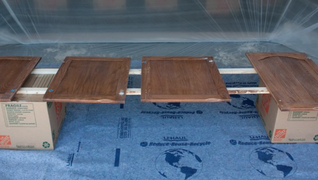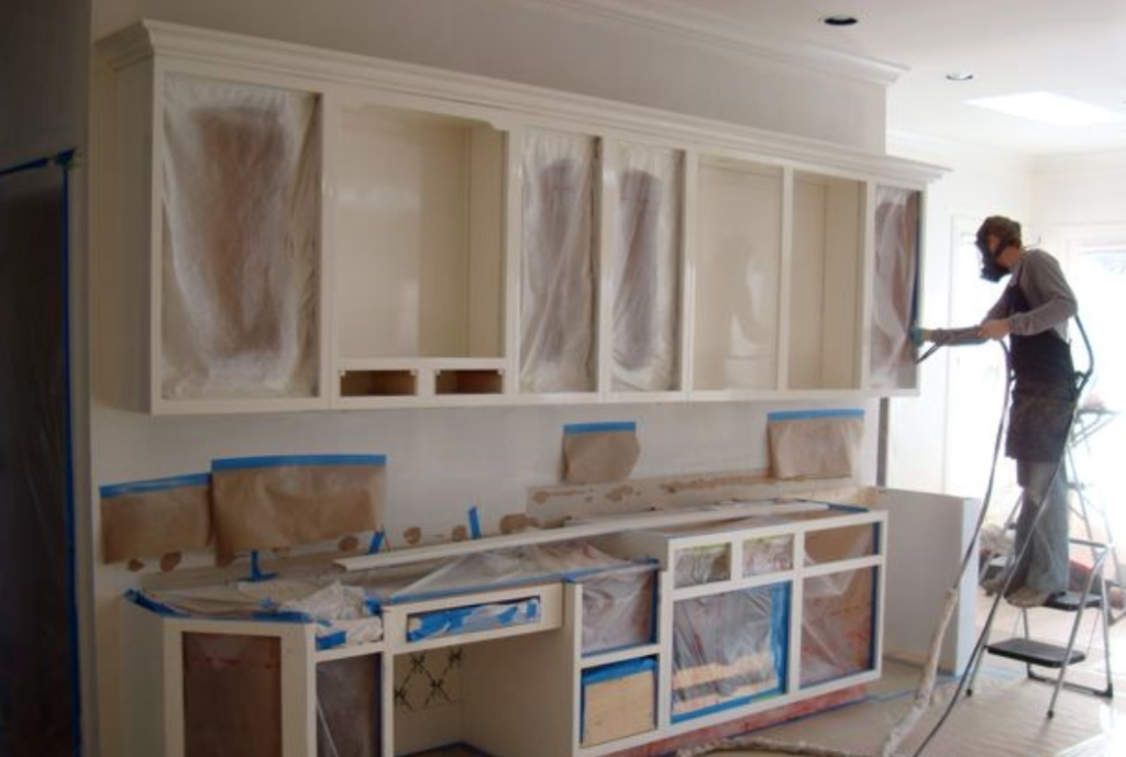 Чем покрасить кухонный гарнитур своими руками: из аэрозольного баллончика или краскопульта, мы уже решили.