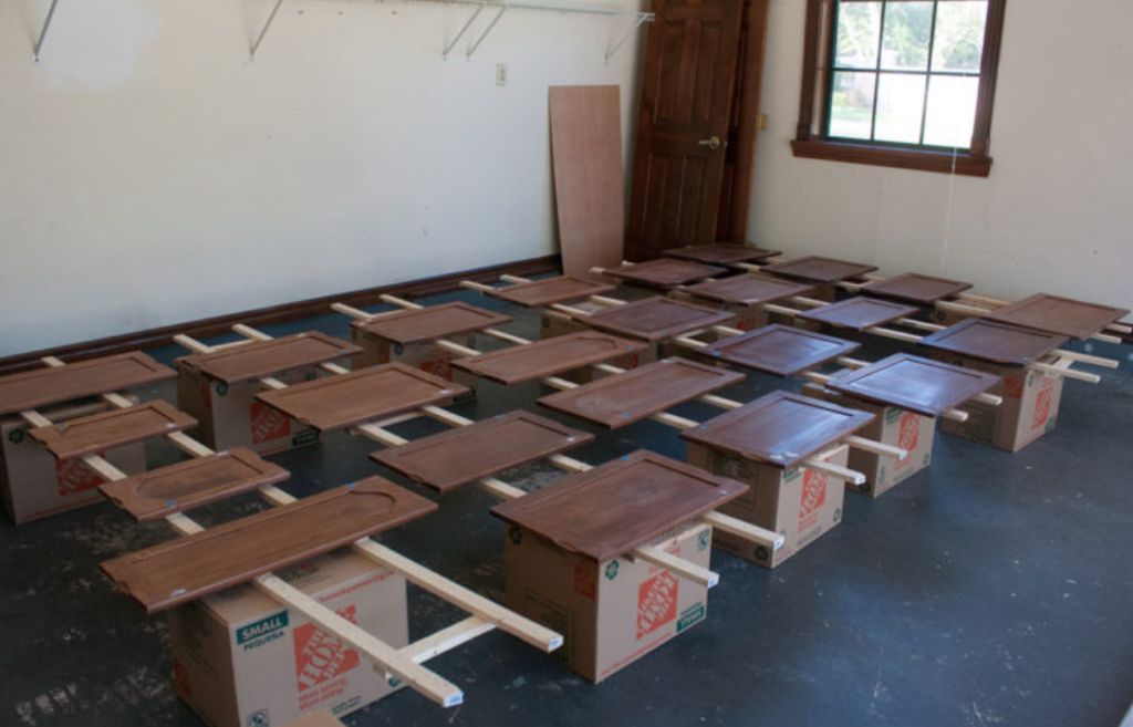 - когда все фасады оклеены, можно прикручивать их обратно;