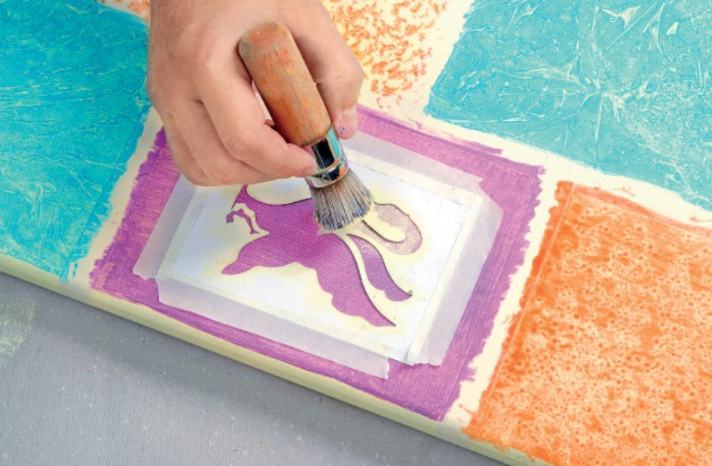 - Зафиксировать бумажные изображения (декупаж). На этом этапе также можно использовать трафаретные и контурные рисунки из оракала.